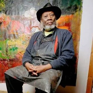Internationally renowned Modernist abstract painter based in London since 1953, Frank Bowling was born in colonial British Guyana. As early as 1966 he often maintained studios in New York City as well as London. Widely recognized critically since his solo exhibition, 1971, at the Whitney Museum of American Art and featured in the Venice Biennale, Bowling is the first Black artist to be elected Royal Academician, 2005, in the U.K. In 2008, he was honored by another exceptional award for his creative achievements: the Order of the British Empire (OBE).